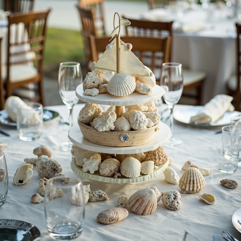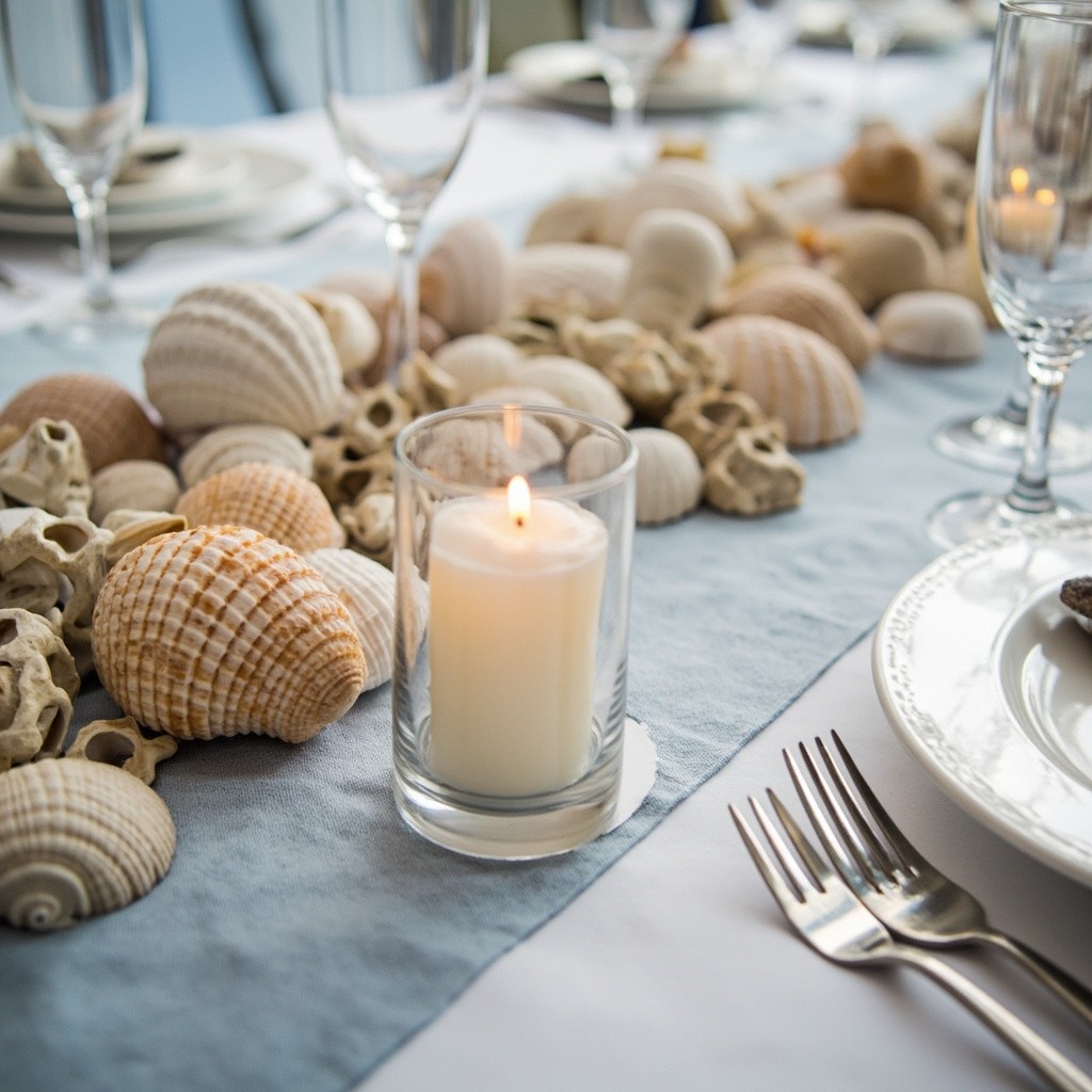 Maritime Wedding Table Decoration with Seashells in Landscape Format