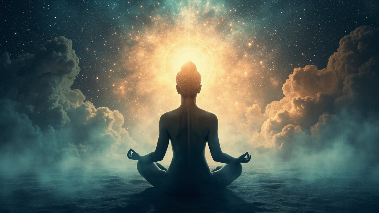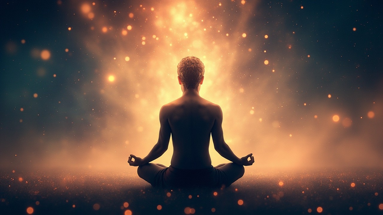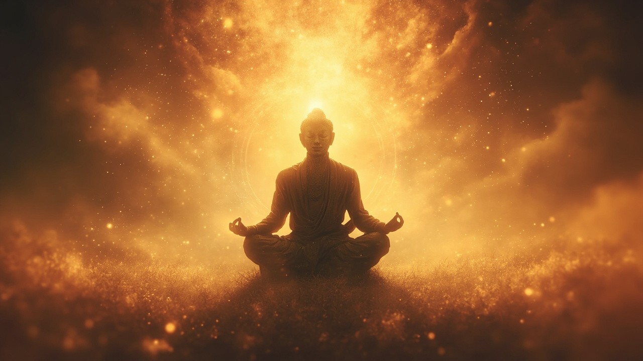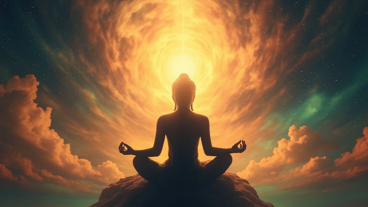 Meditating Figure in Lotus Position with Calming Tones