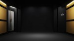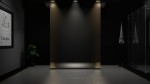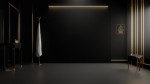 "A realistic corporate office background designed for official staff portraits. The setting should look modern and elegant, with a black and gold theme. Include a subtle company flag and a logo displayed on a wall or glass panel. The lighting should be professional and soft, suitable for use as a portrait background. No people or clutter, just a clean, premium corporate atmosphere."