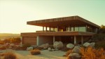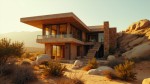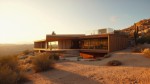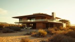 Modernist Cantilevered House in Desert Landscape at Afternoon