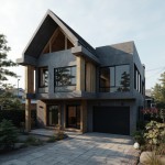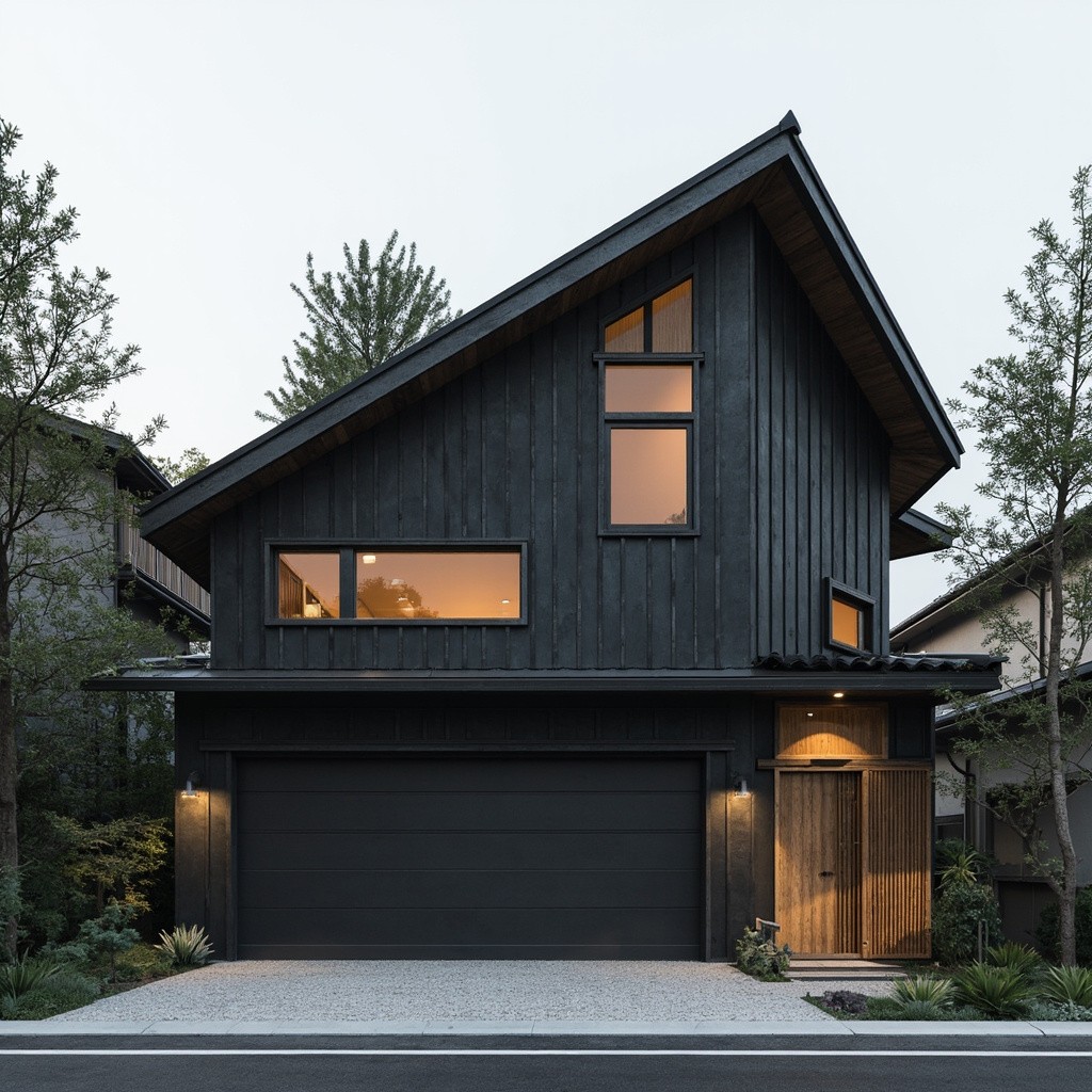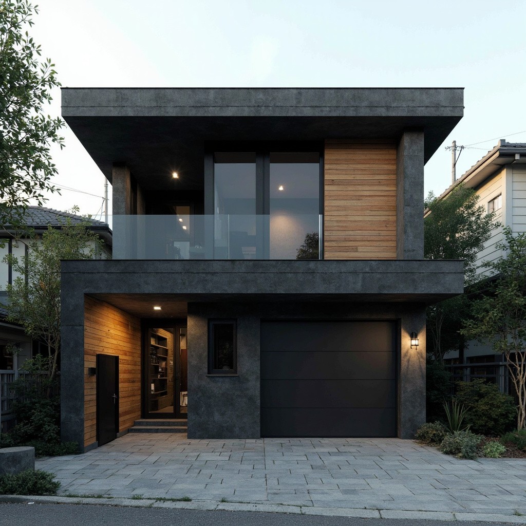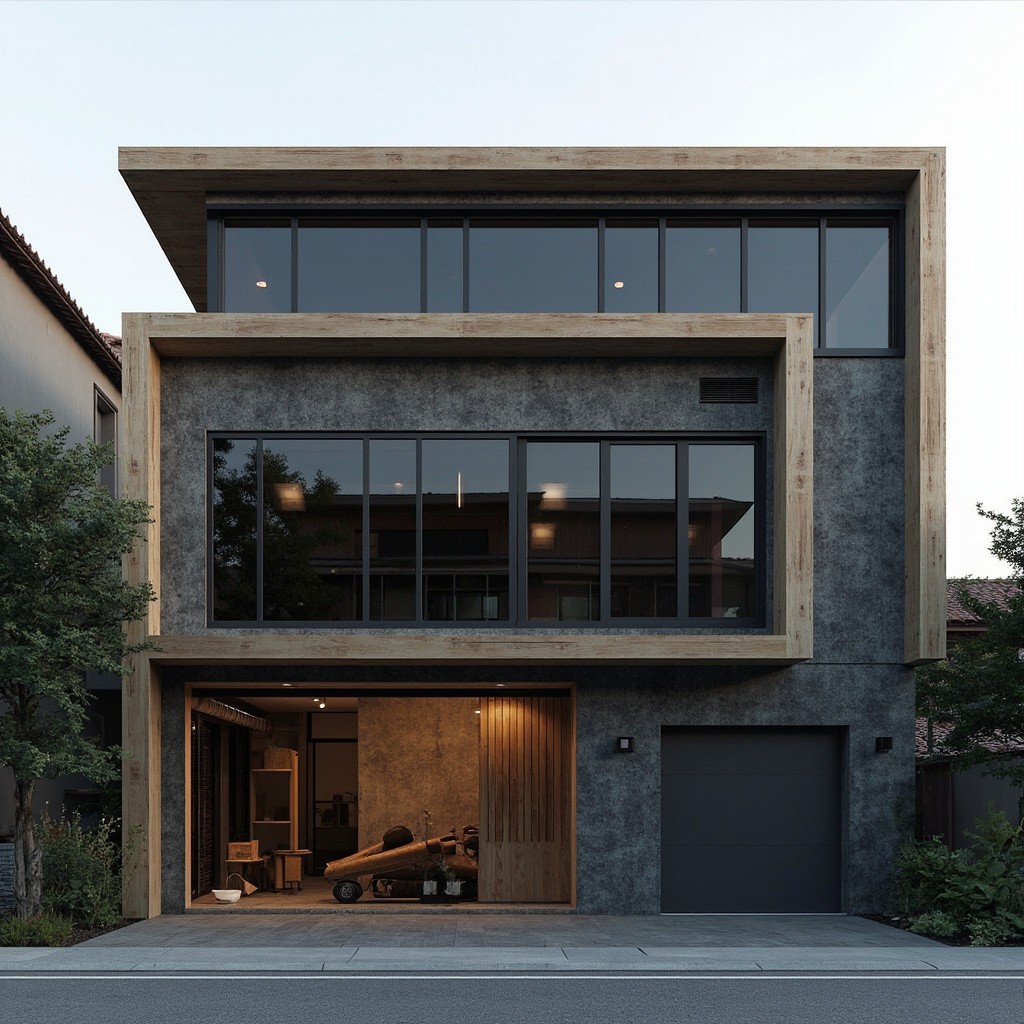 Modern Japanese Two-Level Woodshop with Dark Concrete Grey Exterior and Spruce Wood Accents