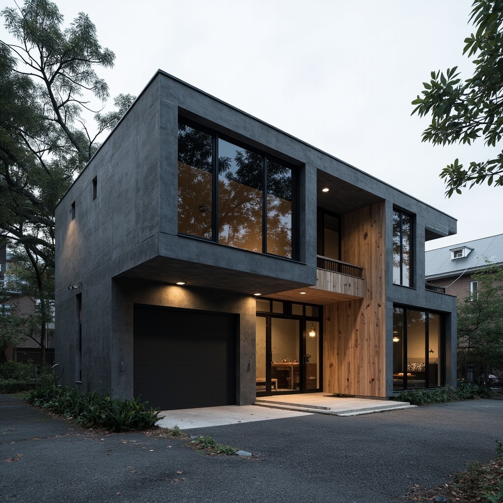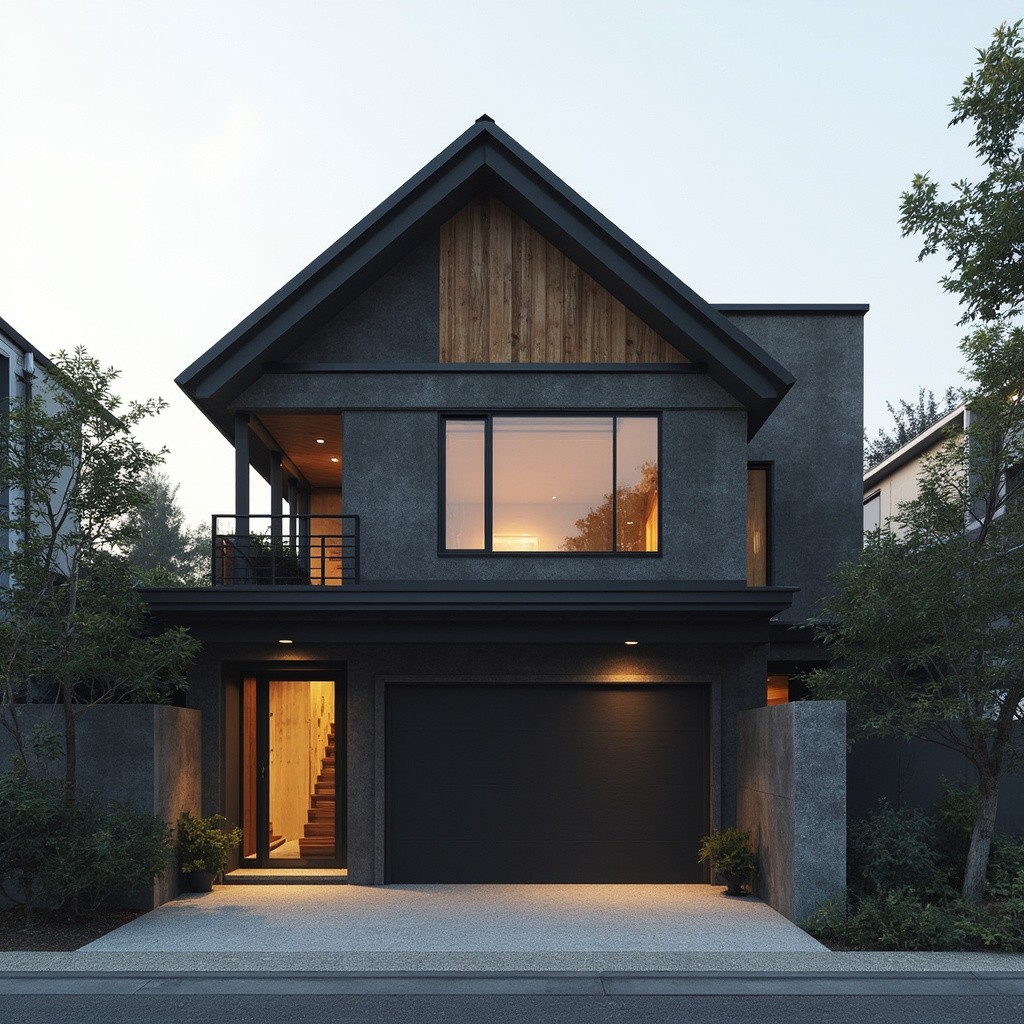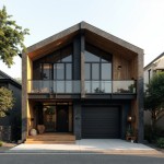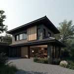 Modern Japanese Two-Level Woodshop with Attached Garage Illustration