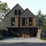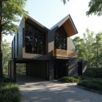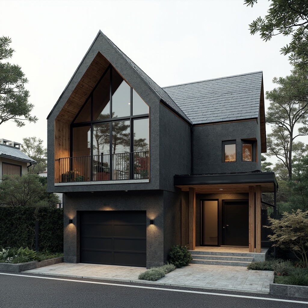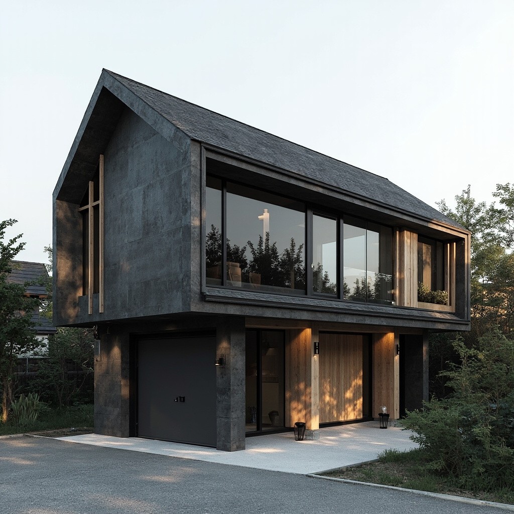 Modern Japanese Two-Level Woodshop with Dark Concrete Grey Exterior