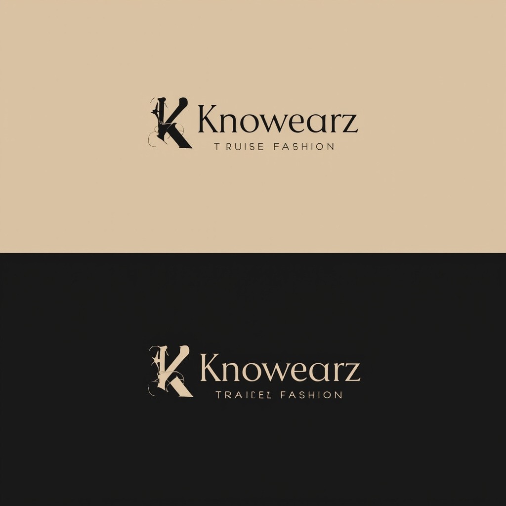 "Logo design for 'Knowearz', an online fashion brand. Luxurious, elegant, and modern with a subtle Gen Z flair. Minimalist yet stylish typography, sleek lines, abstract fashion-inspired elements without showing clothes. Sophisticated color palette with black, gold, beige, or soft metallics. High-end, premium feel, balanced with a youthful, contemporary twist. Clean composition, professional, eye-catching, and versatile for digital branding."