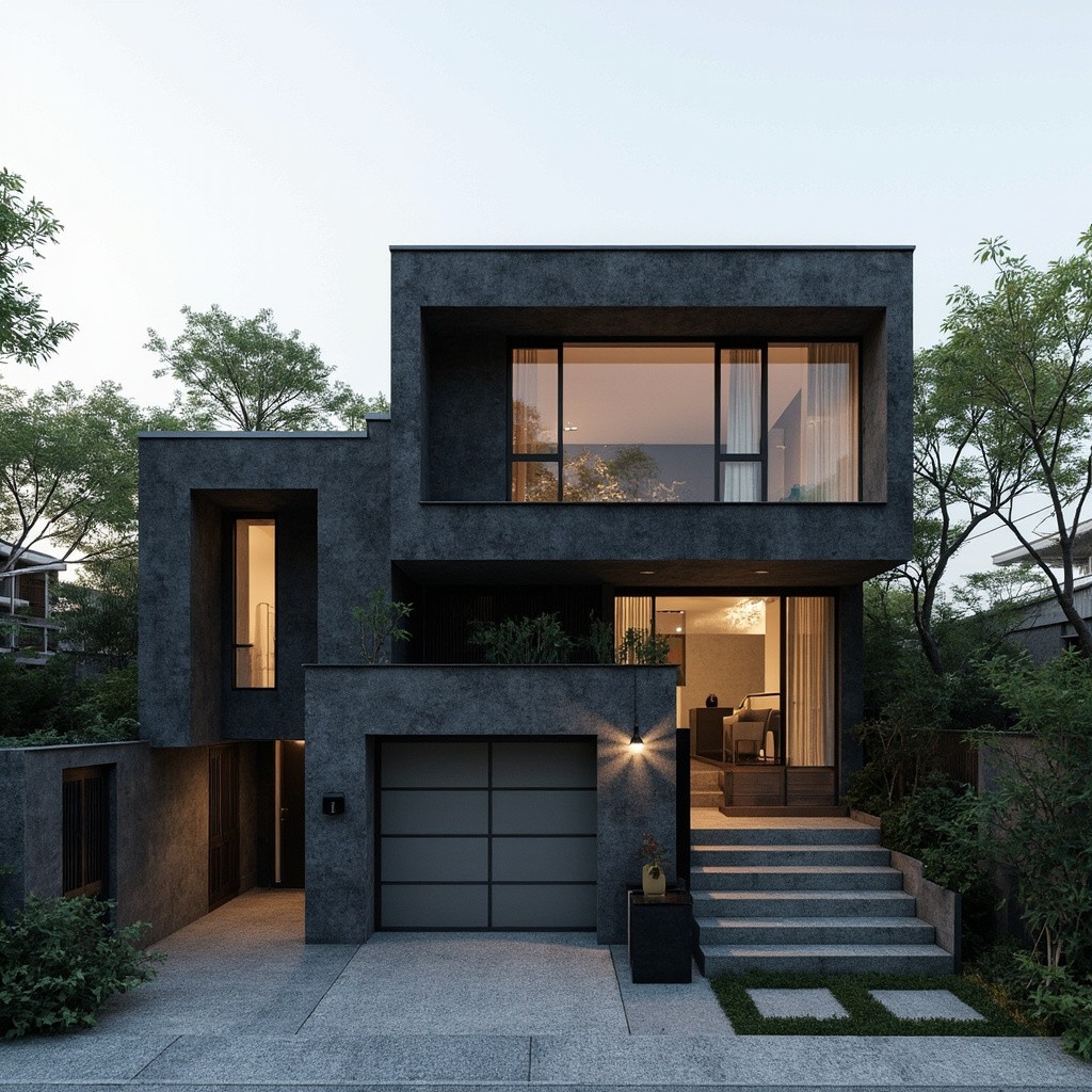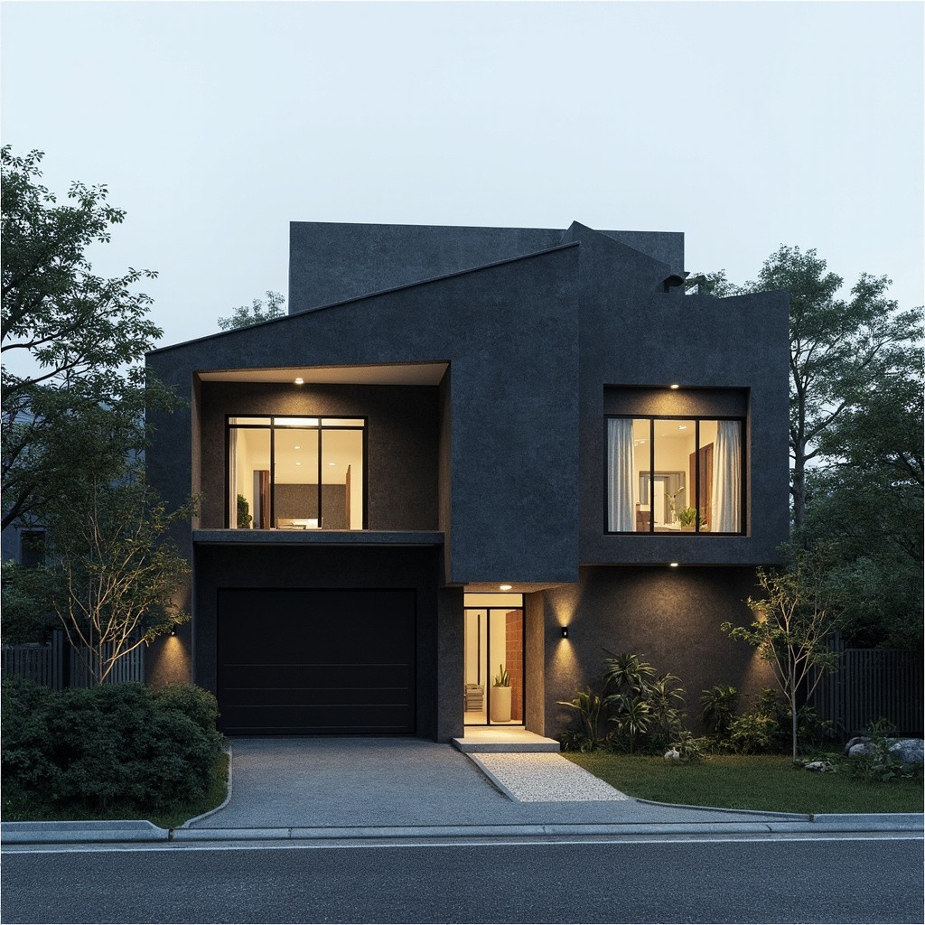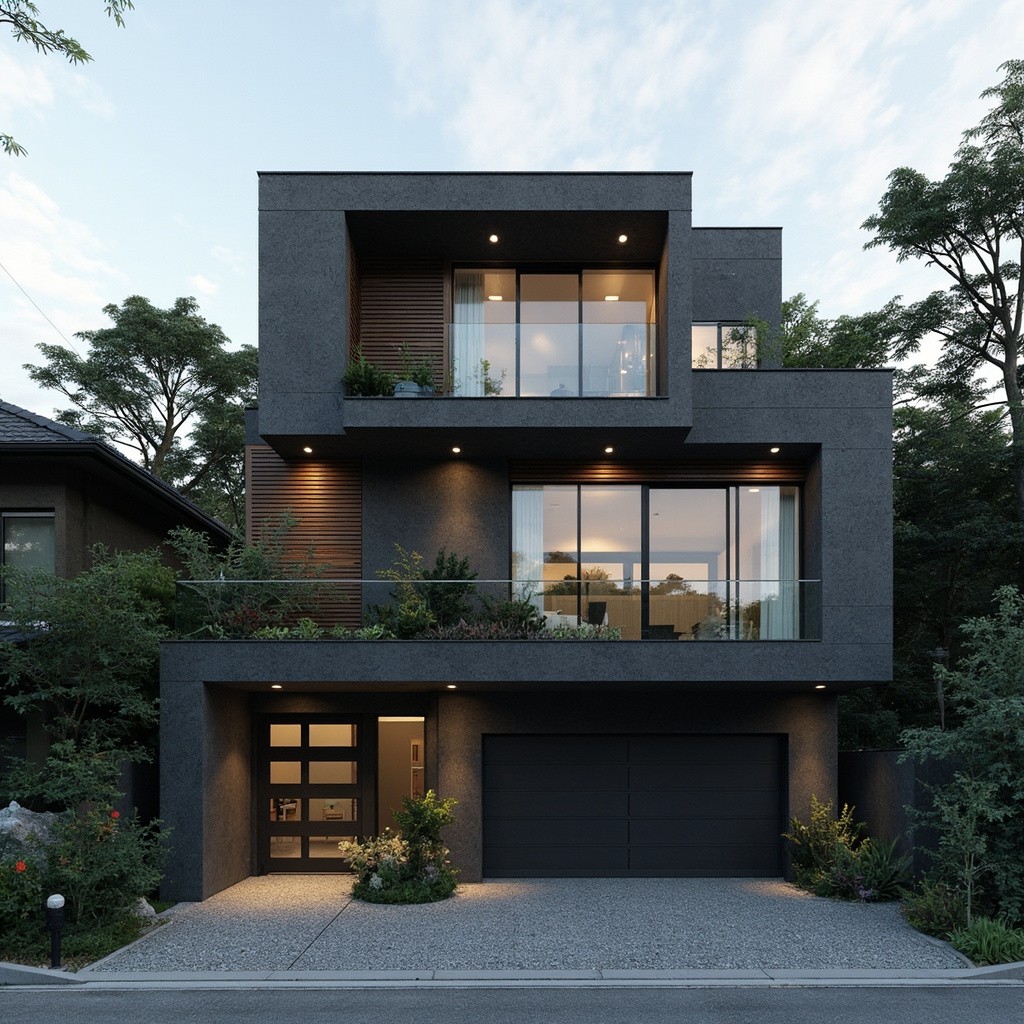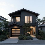 Modern Japanese 2-Level House with Dark Grey Concrete Exterior and Spruce Wood Accents