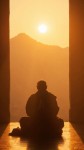 Monk Praying at Sunrise in Mountain Temple Courtyard