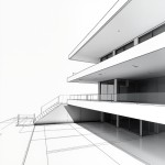 Modern Building Architecture Sketch in Black and White, Perspective View