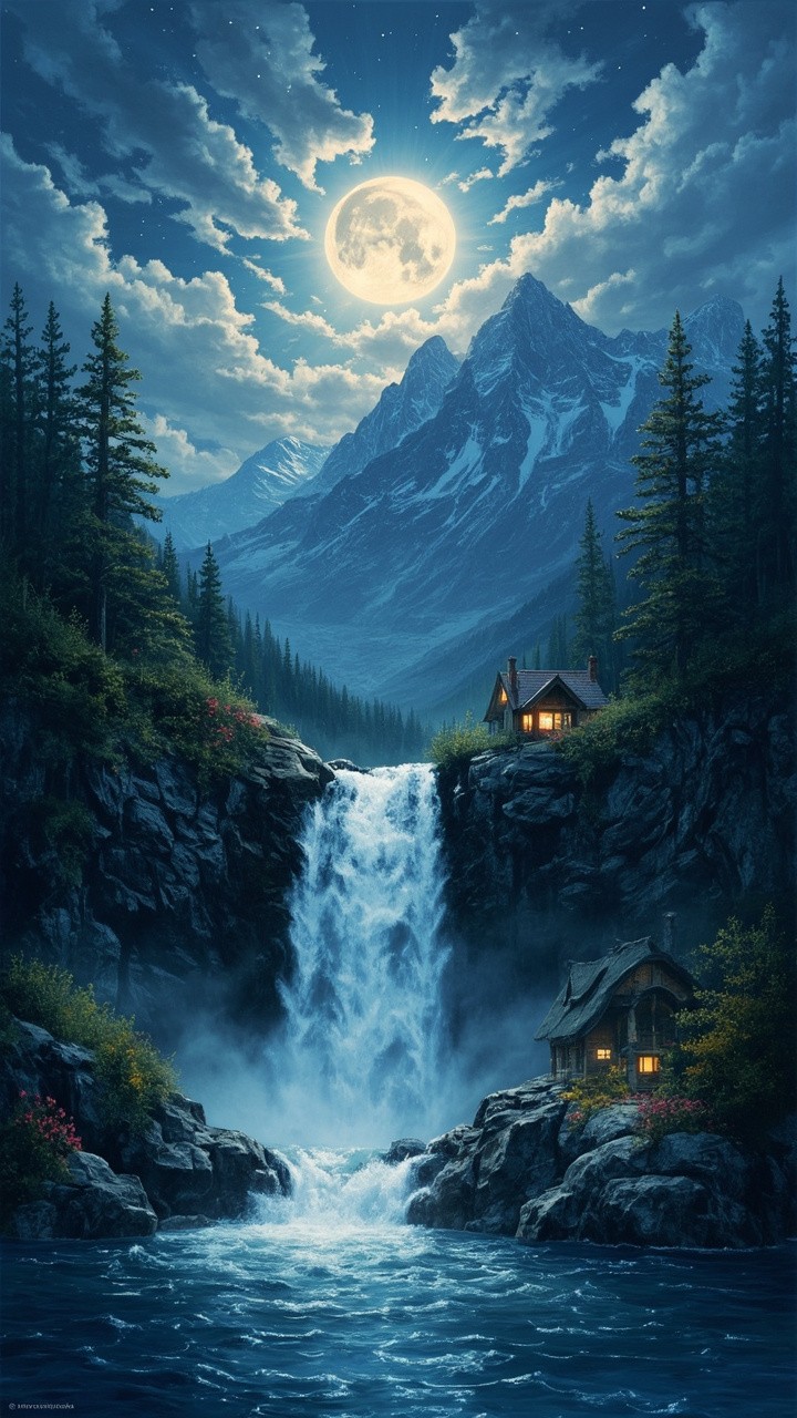 Mountain Waterfall and Moon Home Video