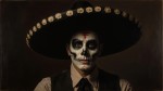 Mexican Charro Man with Mariachi Sombrero and Painted Skull Face Oil Painting