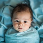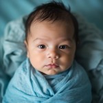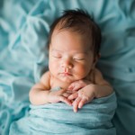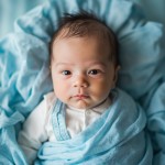 Overhead View of 15-Day-Old Baby on Soft Sky-Blue Fabrics