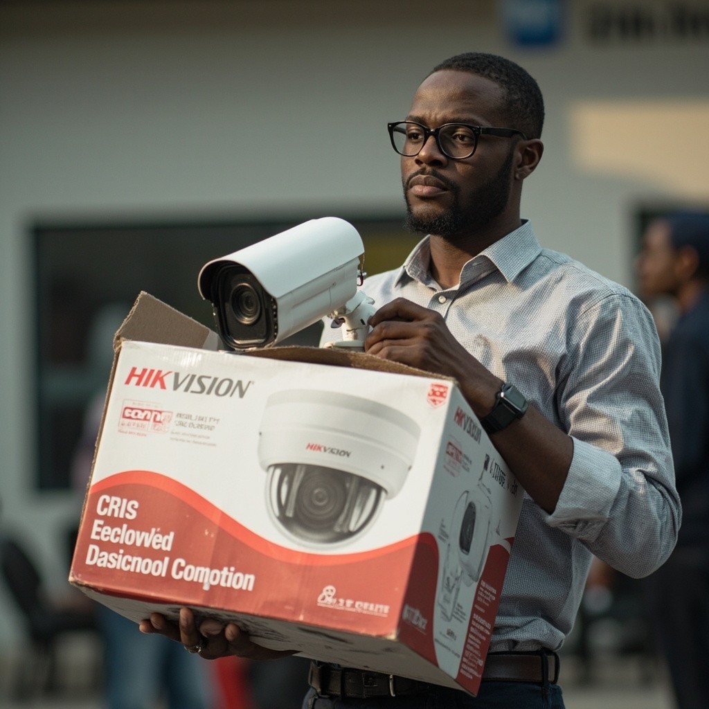 Nigerian Man Holding New Hikvision CCTV Camera at Primetech Security Equipment