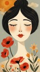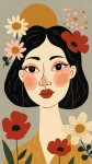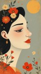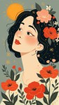 Iconic Woman Face with Sun, Flower, Roots in Matte Gray and Gold