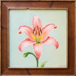 Pastel Colored Lily Oil Painting in Wooden Frame