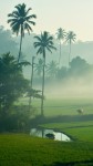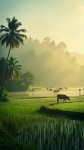 Serene Village Morning, Misty Paddy Fields and Grazing Cows
