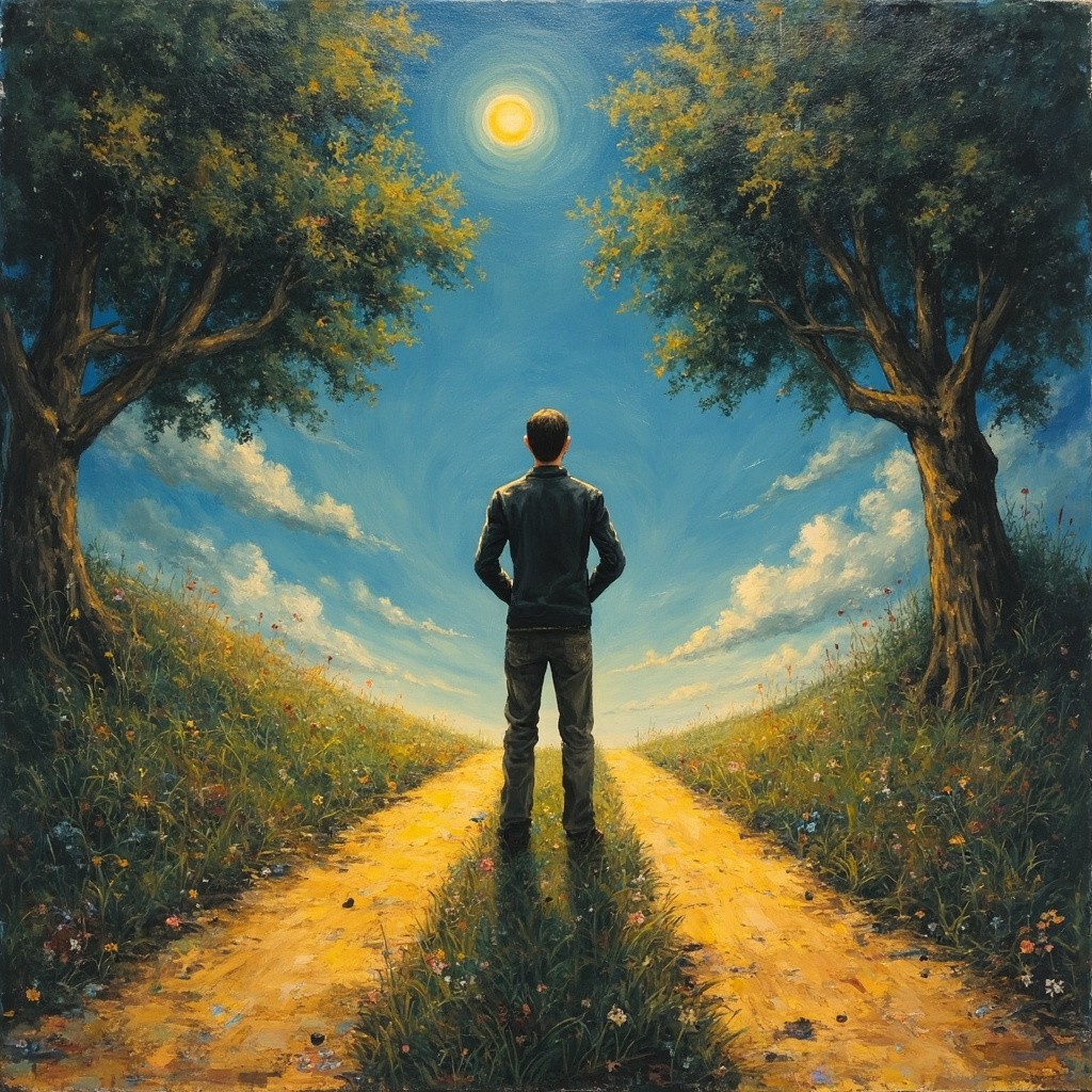 Person Standing at Crossroad Symbolizing Choices