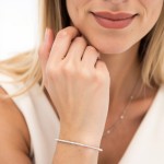 Person Wearing Platinum Diamond Tennis Bracelet on White Background