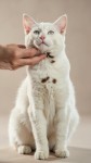 Full-Body White Cat with Black Chin Spots Being Touched by Hand