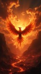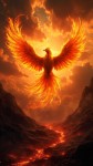 Phoenix Reborn from Lava at Sunrise over Scorched Valley