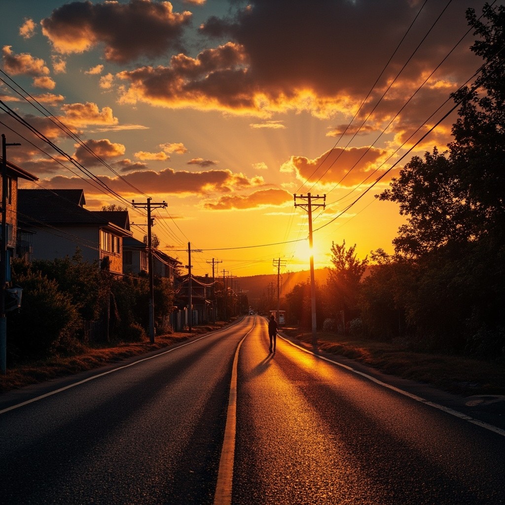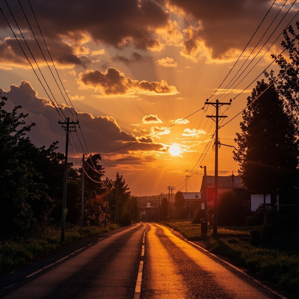 Transform this image into a dramatic sunset HDR style while preserving 100% of the original content. Do NOT change, add, remove, replace, or distort any object, subject, animal, person, building, tree, road, shadow, reflection, or background. Maintain the exact same: composition framing perspective w.compcation.foming camera angle subject positions shapes and proportions Colors must look realistic, not oversaturated, not artificial. No fantasy effects, no extra clouds, no extra sun, no lens flares, no fog, no rain unless already present. This is a strict color and lighting transformation only. Photorealistic sunset HDR edit. Original image must remain perfectly recognizable