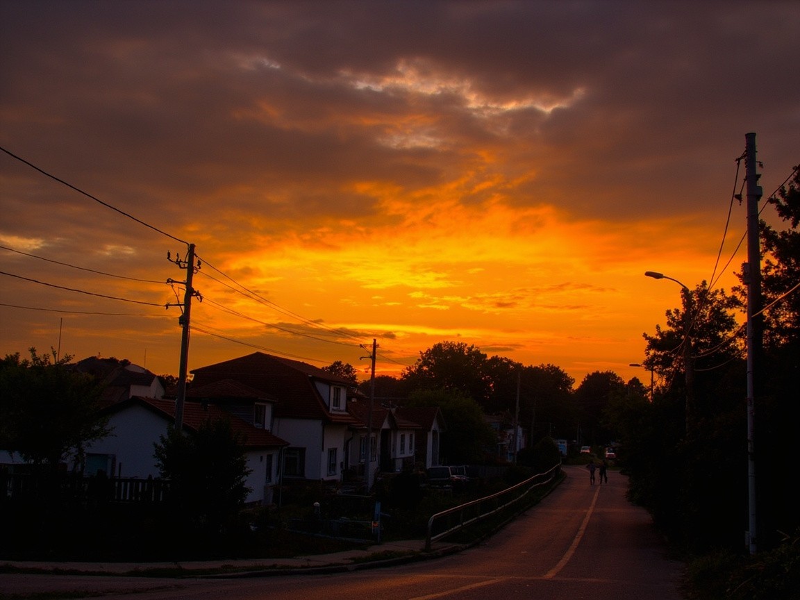 Transform this image into a dramatic sunset HDR style while preserving 100% of the original content. Do NOT change, add, remove, replace, or distort any object, subject, animal, person, building, tree, road, shadow, reflection, or background. Maintain the exact same: composition framing perspective camera angle subject positions shapes and proportions Colors must look realistic, not oversaturated, not artificial. No fantasy effects, no extra clouds, no extra sun, no lens flares, no fog, no rain unless already present.This is a strict color and lighting transformation only. Photorealistic sunset HDR edit. Original image must remain perfectly recognizable.