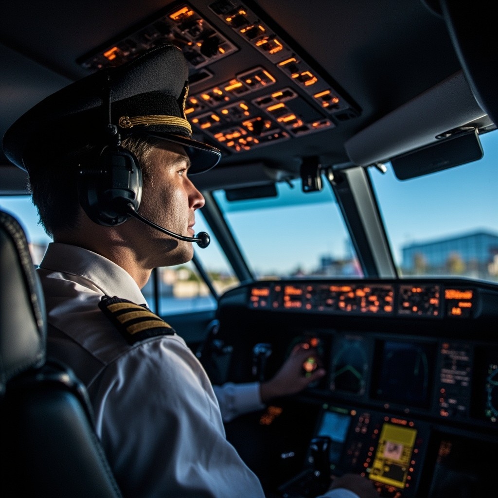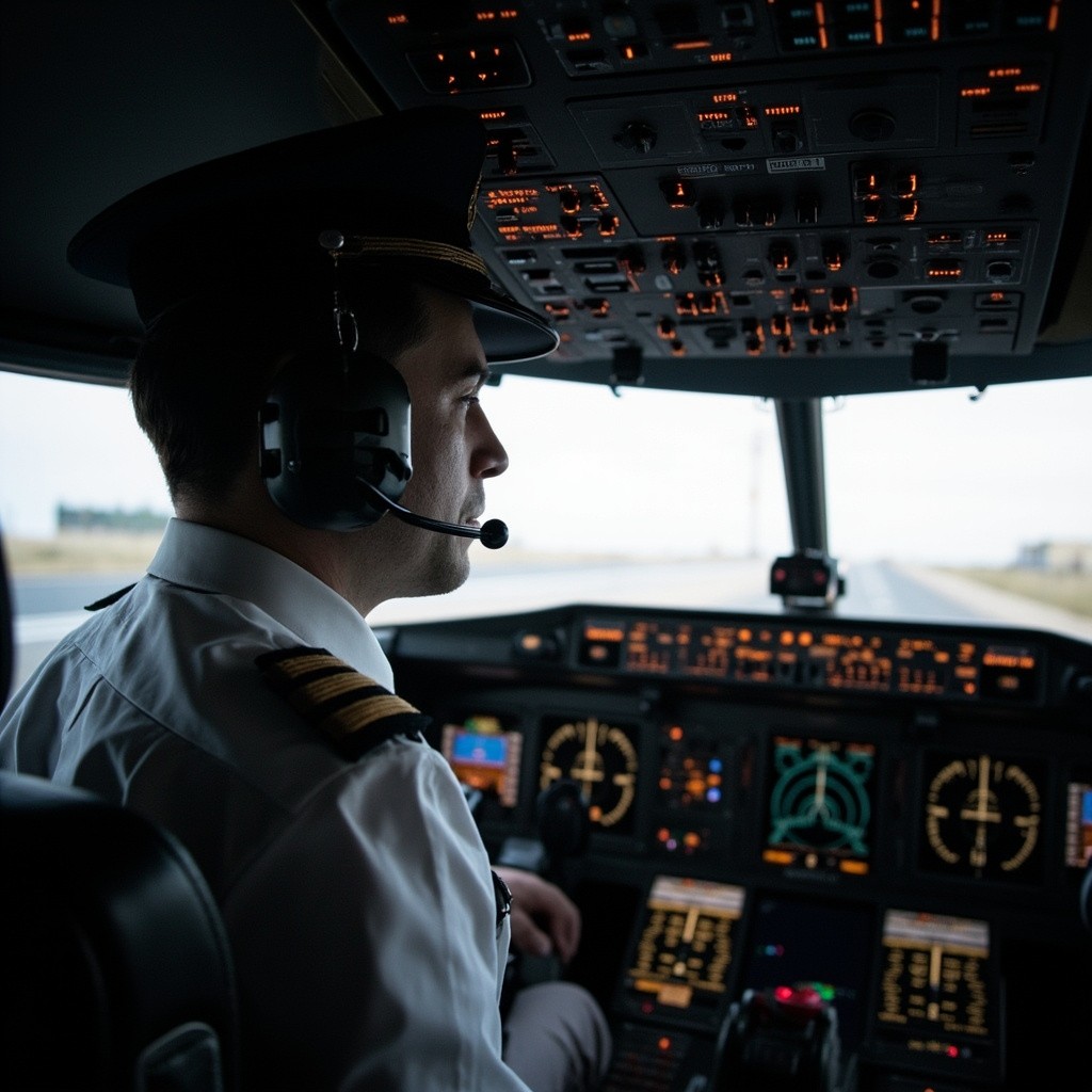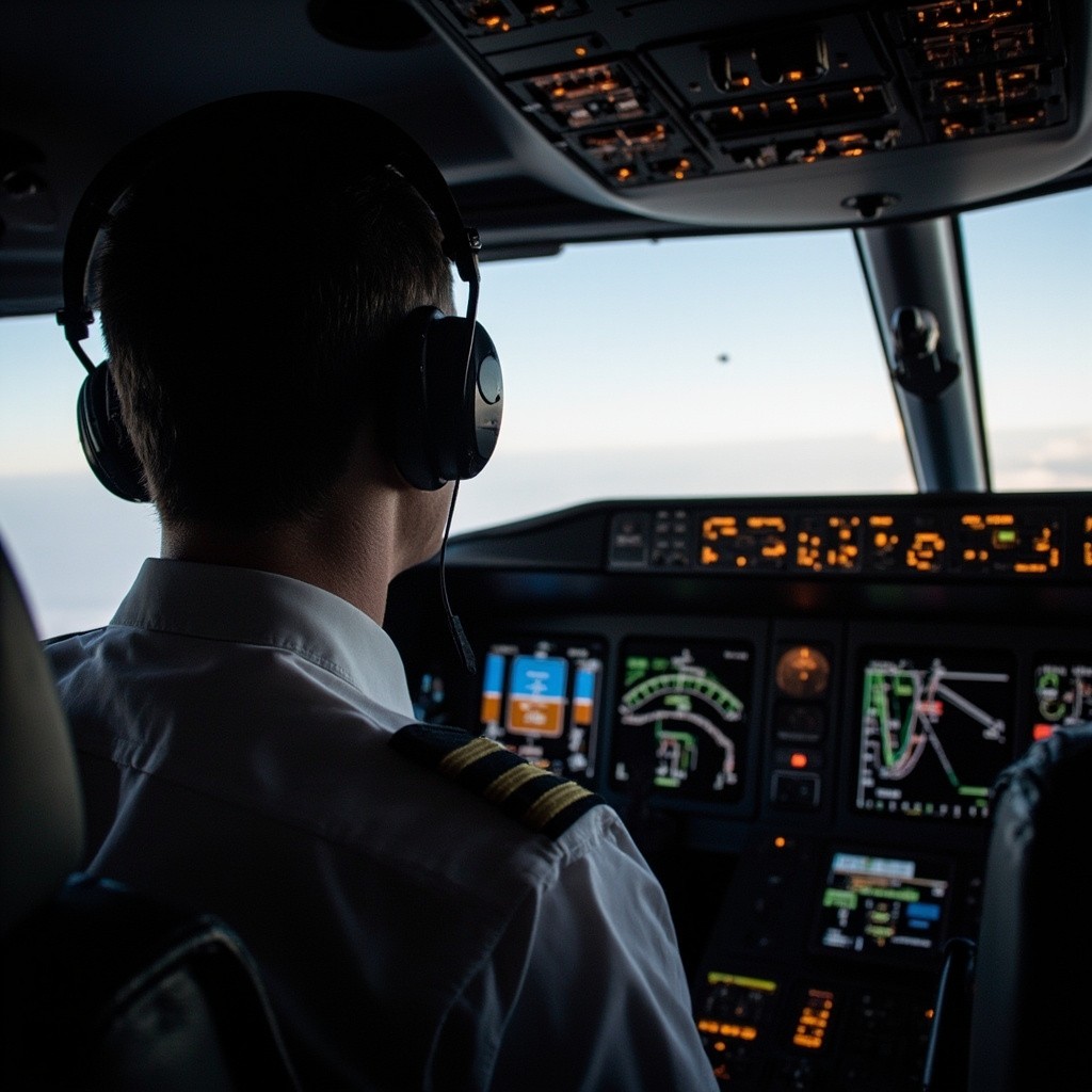 Pilot Watching Passenger Screen in Cockpit