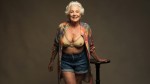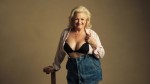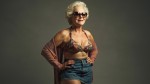 Stylish Plus Size Woman Over 70 in Bra and Jeans Posing
