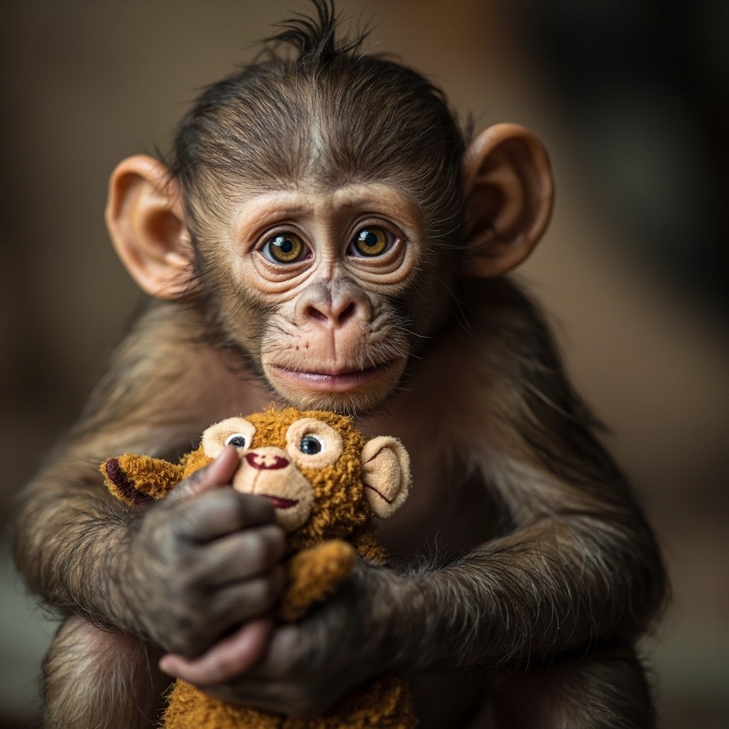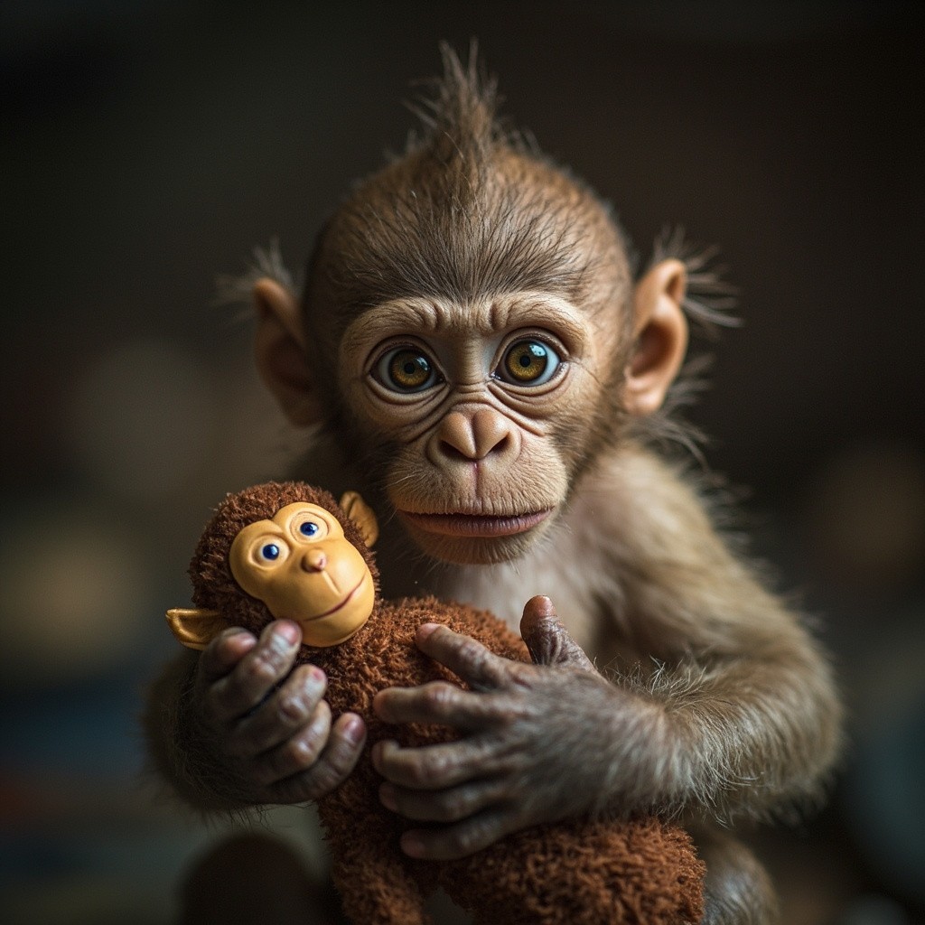Poor Baby Monkey with Toy