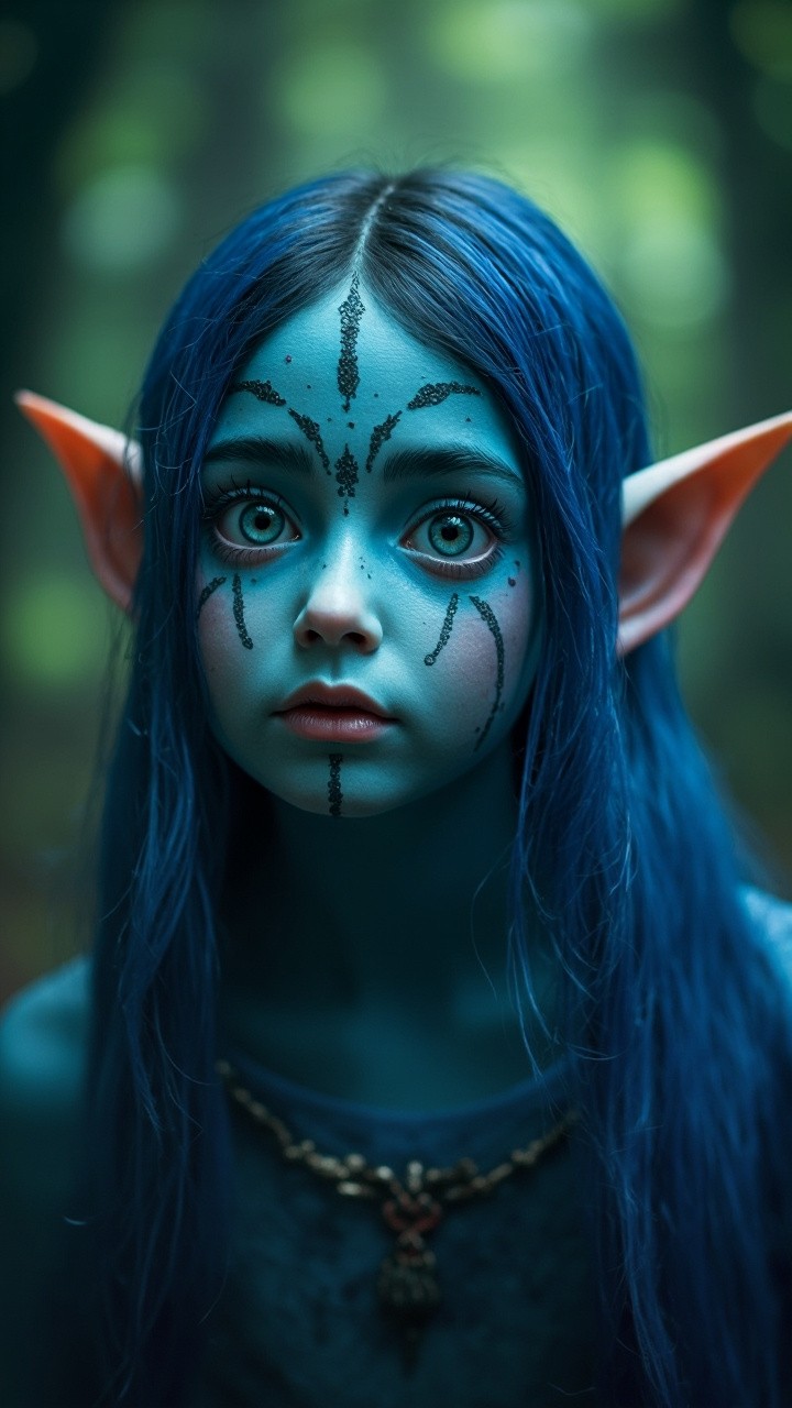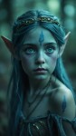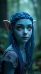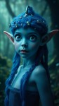 Pretty Elf Girl with Blue Skin in Magical Forest