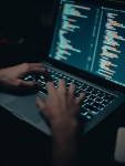 Close-Up View of Man's Hands Coding on Laptop
