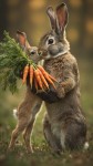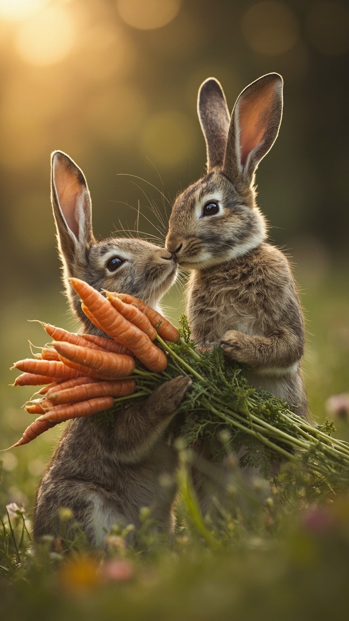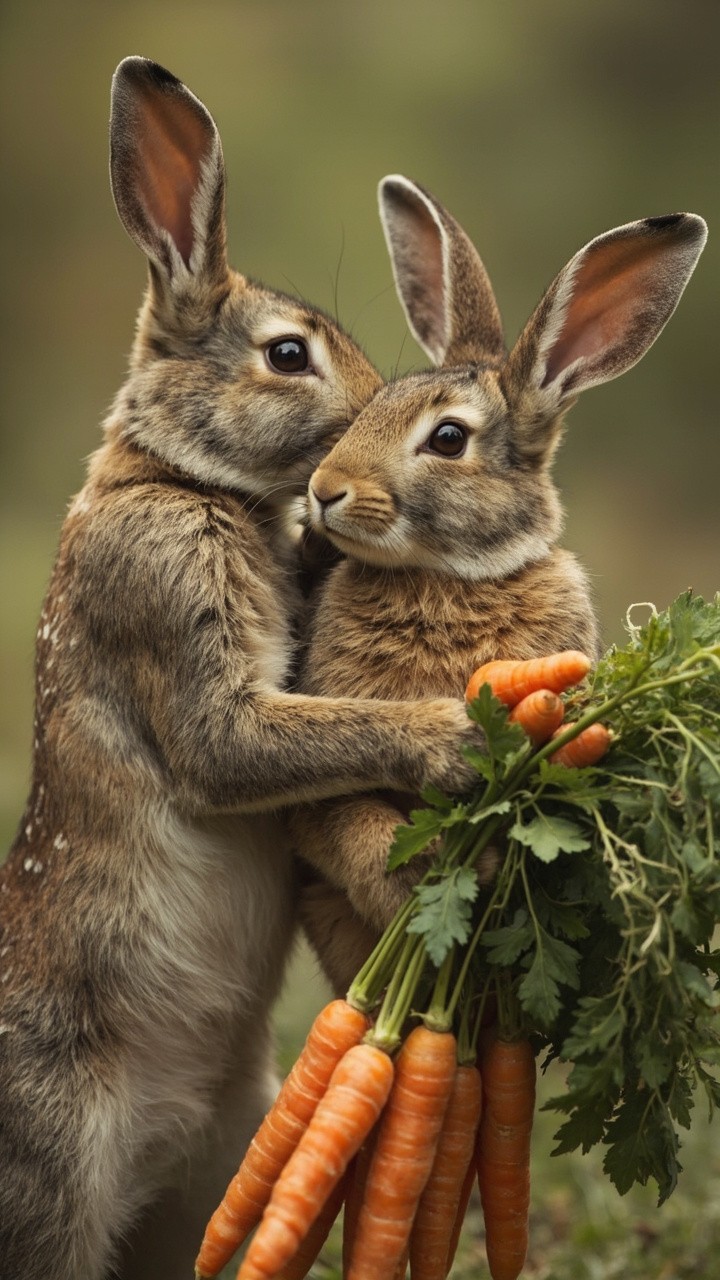 Muscular Rabbit Giving Carrot Bouquet to Female Rabbit