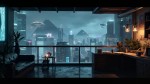 Futuristic Apartment Balcony with Cyberpunk Cityscape at Night