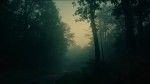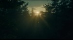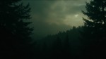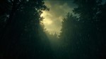 Rainy Sunset Forest with Raindrops on Leaves in Evening Light