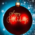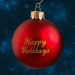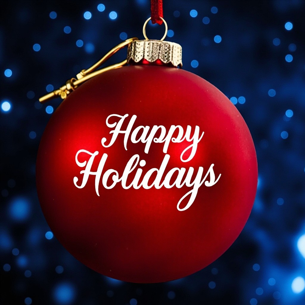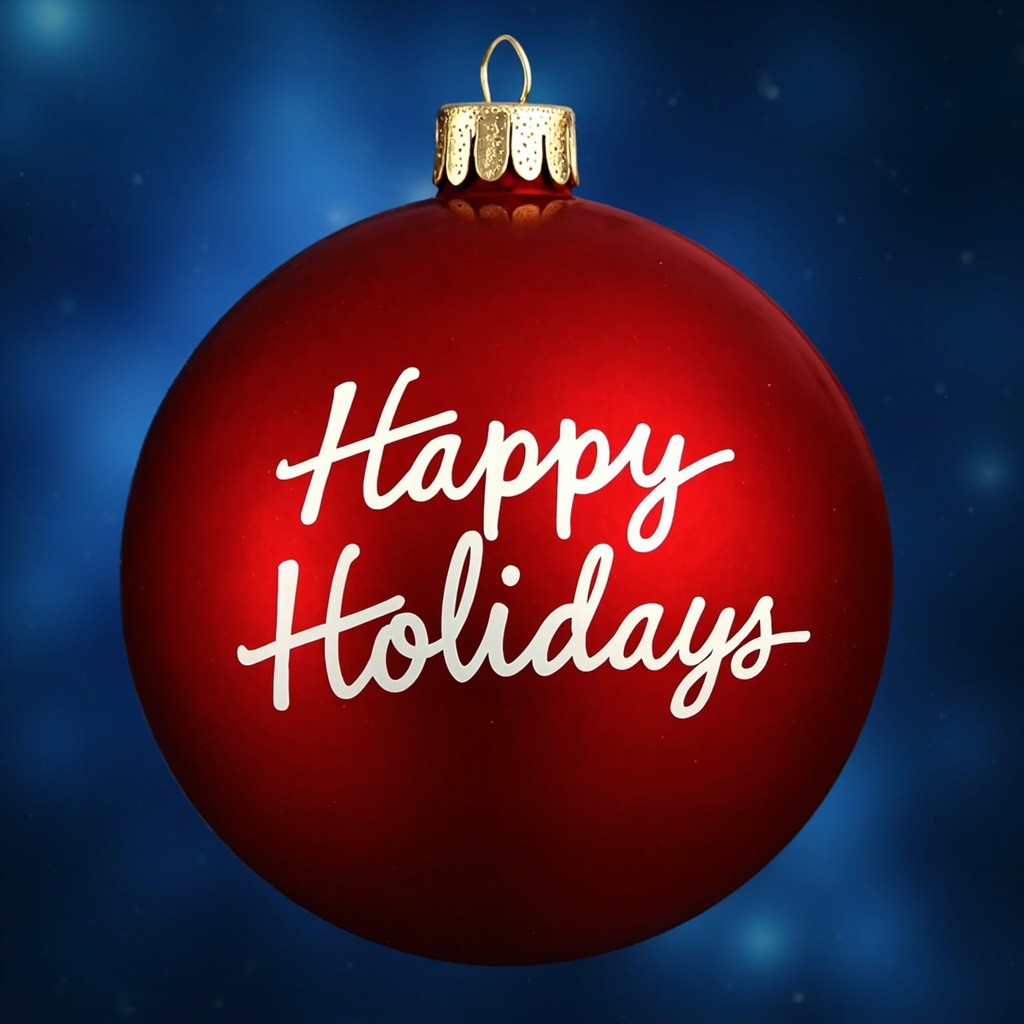 Red Christmas Tree Ornament with 'Buone Feste' Text and Starry Blue Background