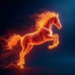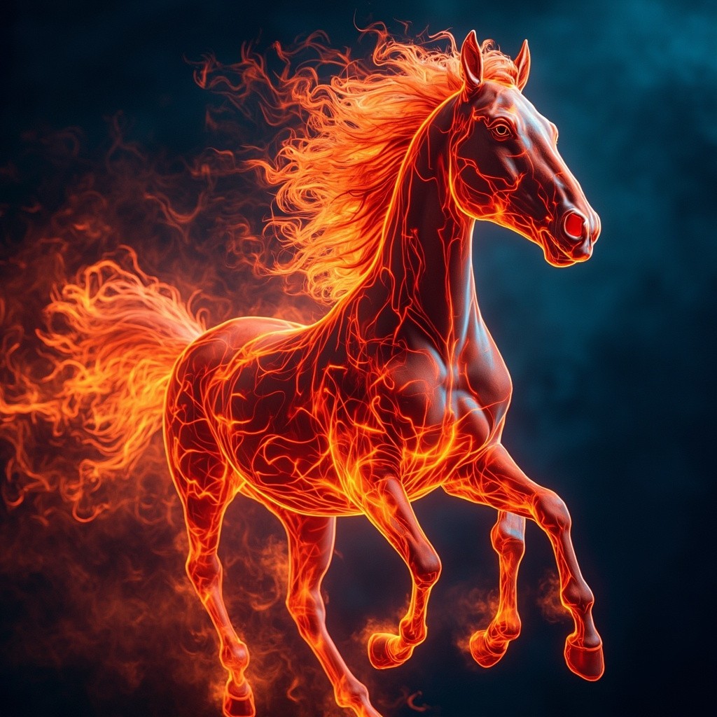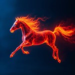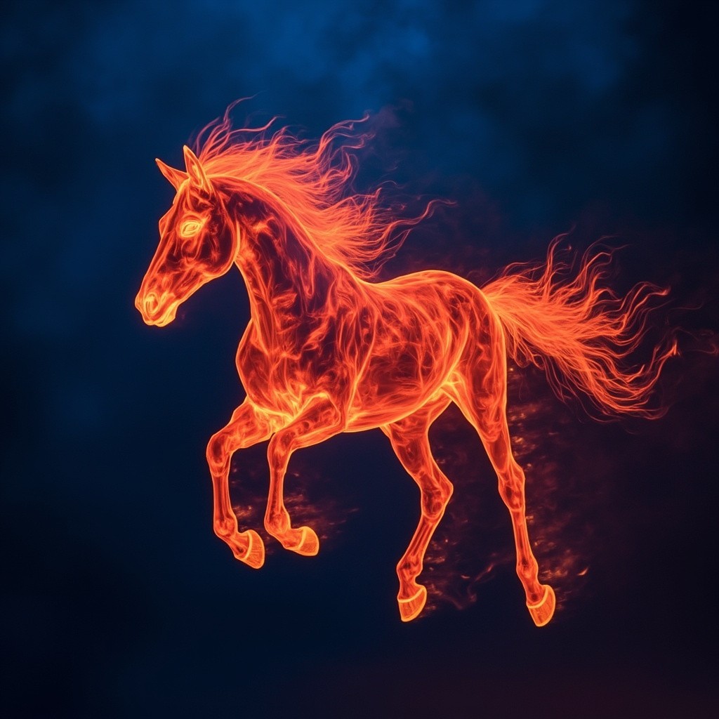 Running Fire Horse on Blue Background