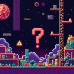 Retro Pixel Art Universe with Colorful Blocks, Platforms and Floating Question Mark