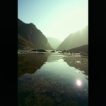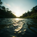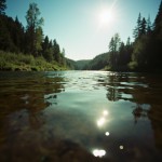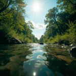 Dipped Camera View of River, Distant Creek, and Noon Sky