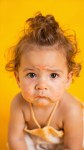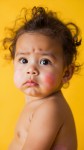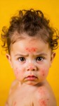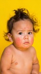 Cute Baby Girl with Skin Eczema on Yellow Background