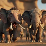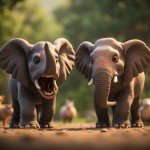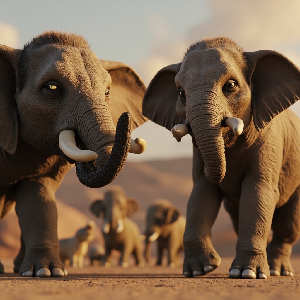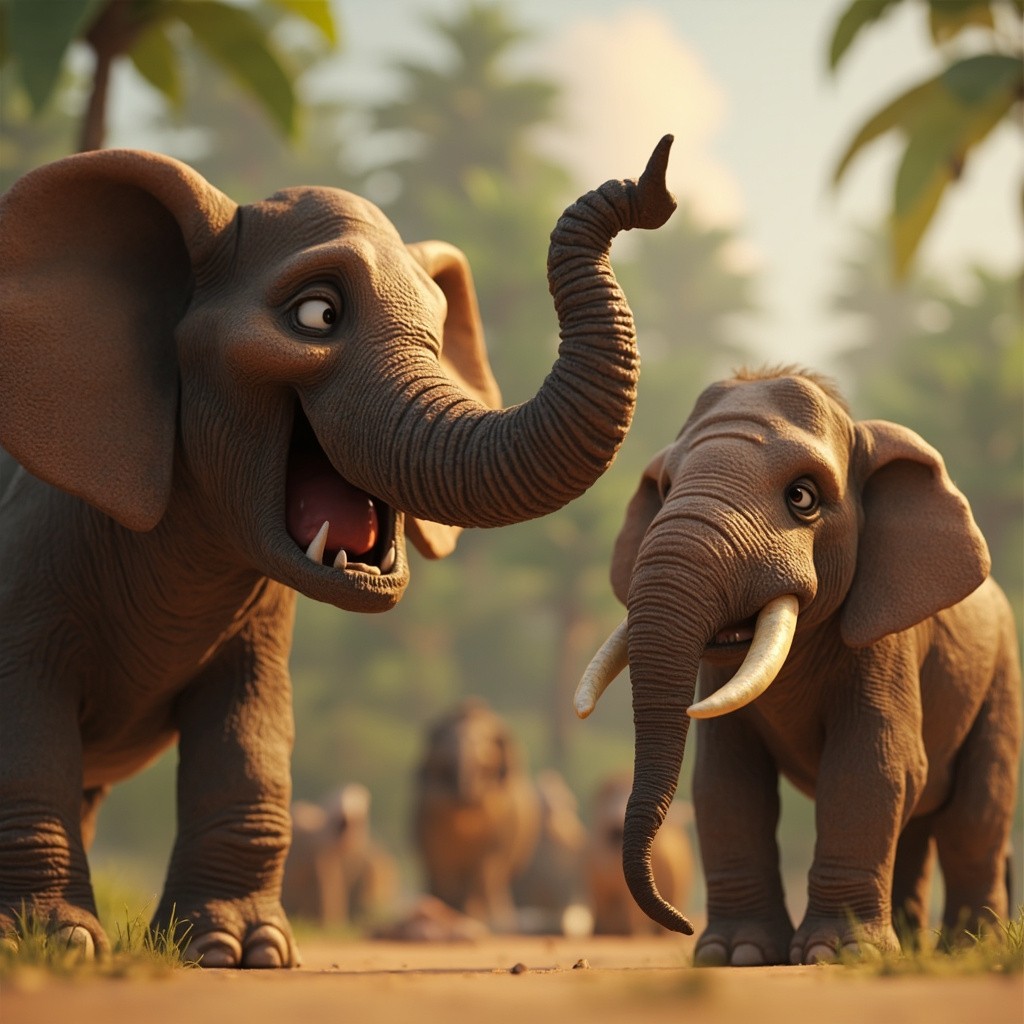 3D Indian Elephant Displaying Aggression and Calm Elephant in Background