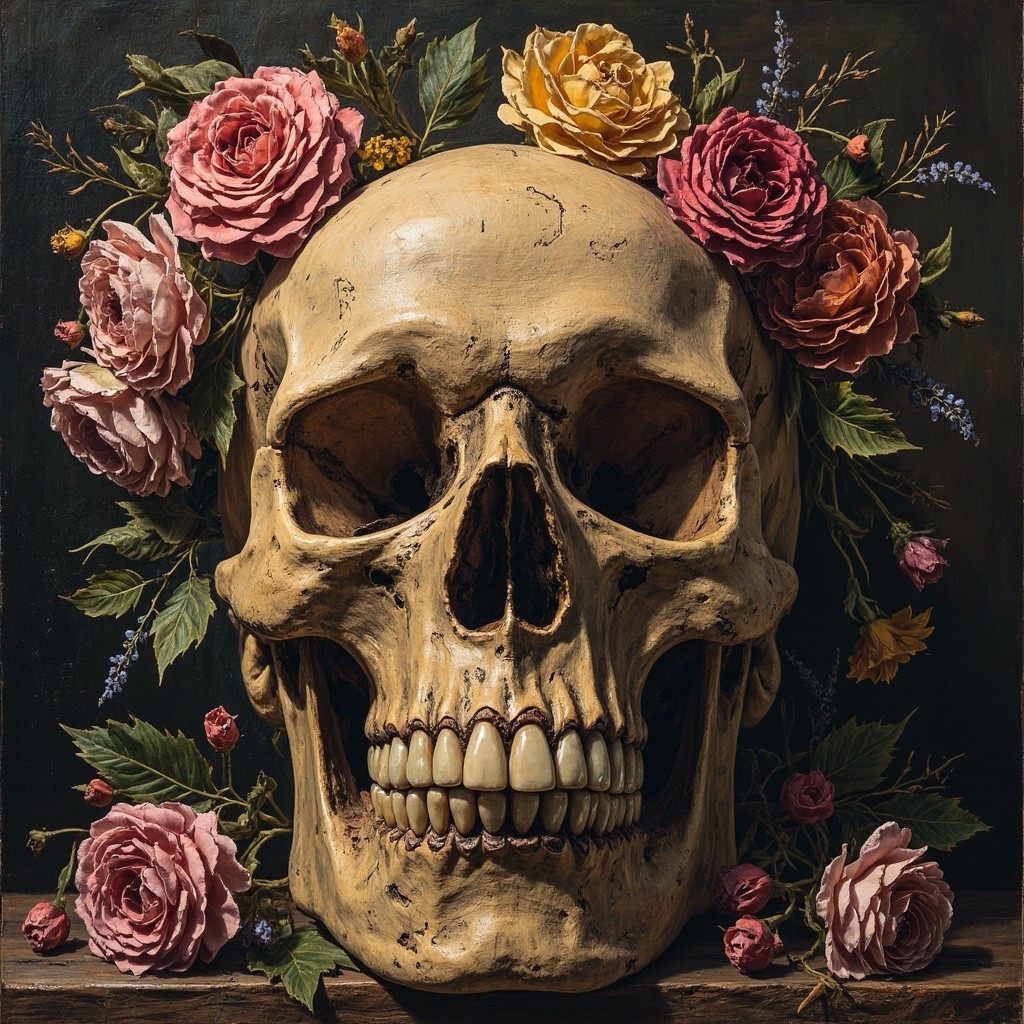 Skull Adorned with Flowers