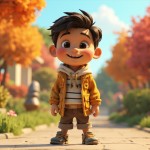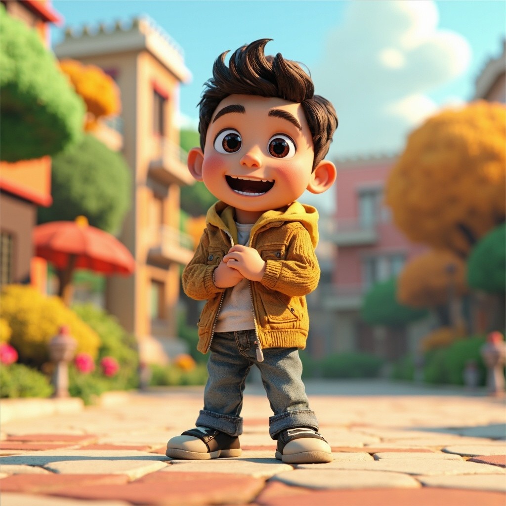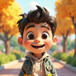 3D Animated Cartoon Boy Smiling in Colorful Park