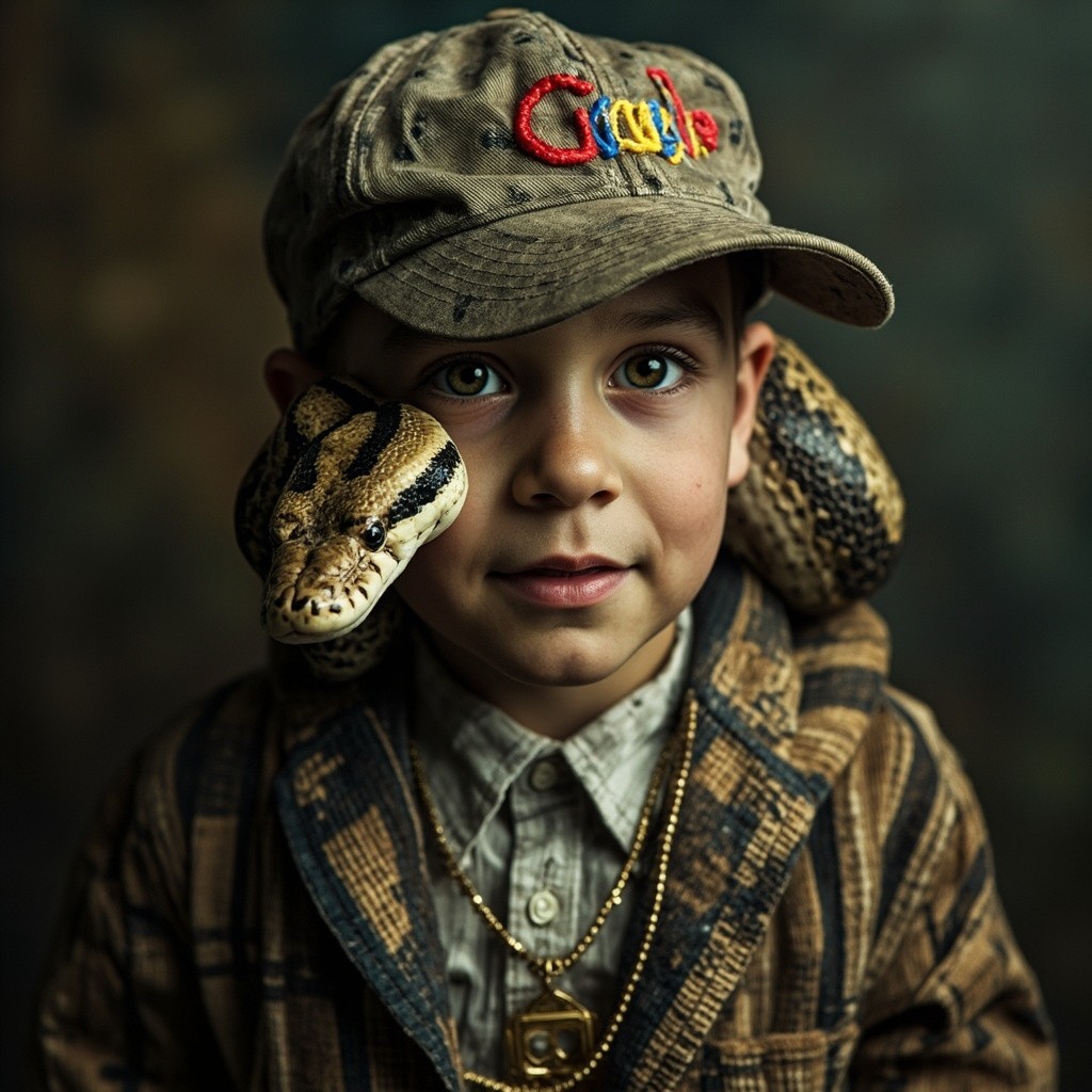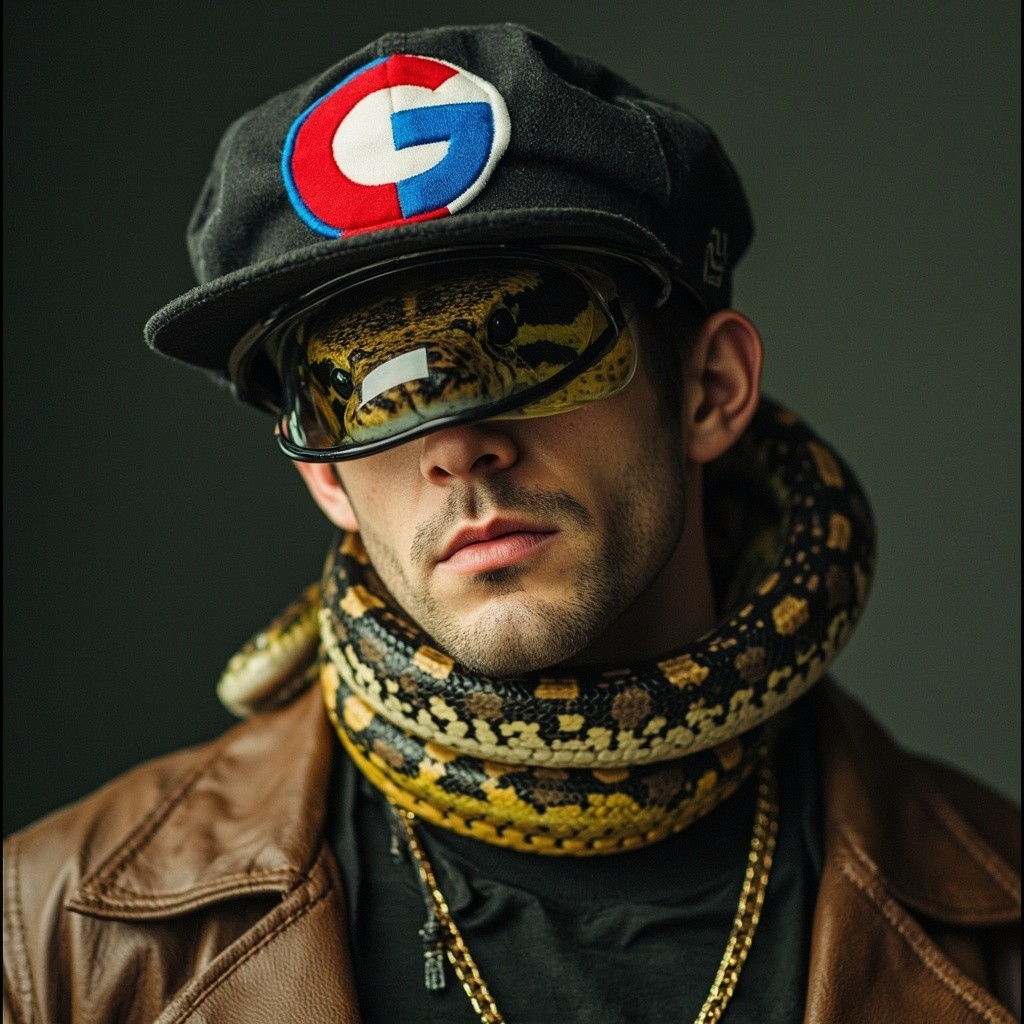 Snake Wearing Caps with Google Icon and Chain on Neck