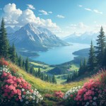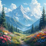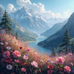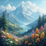 Beautiful Mountain View with Flowers