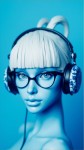 Blue-Skinned Woman with White Hair in Headphones, 3D Portrait