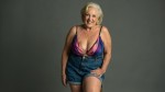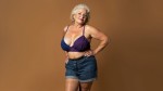 Stylish Plus Size Woman Over 70 in Color Mixed Bra and Jeans