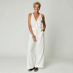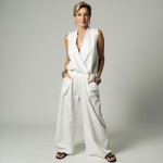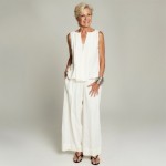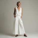 Stylish Woman in White Vest and Trousers with Silver Bangles