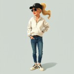 Full Body Image of 40 Year Old Woman in NY Yankee Cap and Adidas Sneakers
