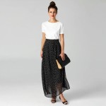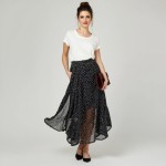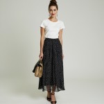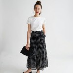 40-Year-Old Woman with Top Knot, Red Lip, Polka Dot Skirt and Clutch Bag