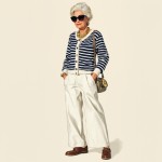 Stylish 40-Year-Old Woman in Nautical Cardigan with Gold Chains and Sunglasses