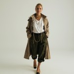 Stylish Forty-Year-Old Woman in Trench Coat and Gold Chains