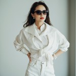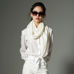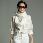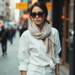 Beautiful 40-year Old Woman Wearing Sunglasses and White Outfit with Scarf